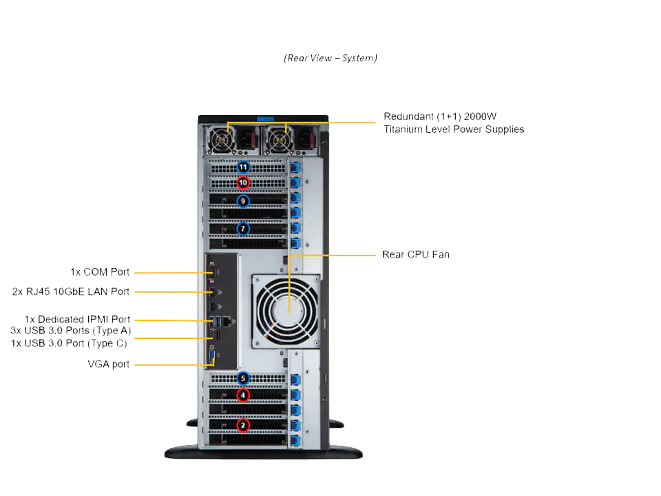 前面板共8個(gè)組合 Tri-Mode NVMe/SATA/SAS 。6個(gè)PCIe 4.0X16,以提供更高的帶寬和系統(tǒng)升級(jí)